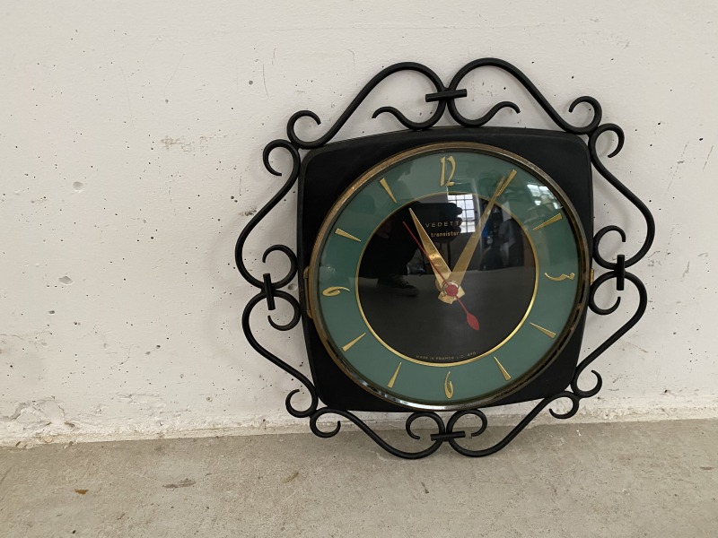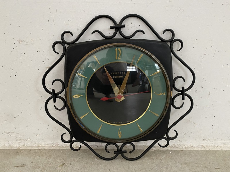 フランス ヴェデット社のアイアン製小振りな掛け時計です。