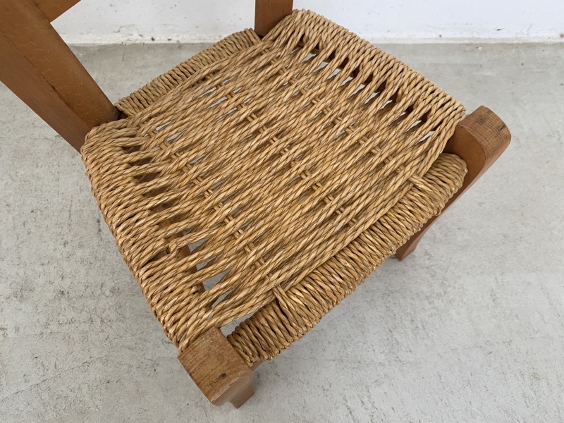 座面は天然素材を紐状に編み込んでつくられるラッシュシートになっているため、より素朴さが強調されています。