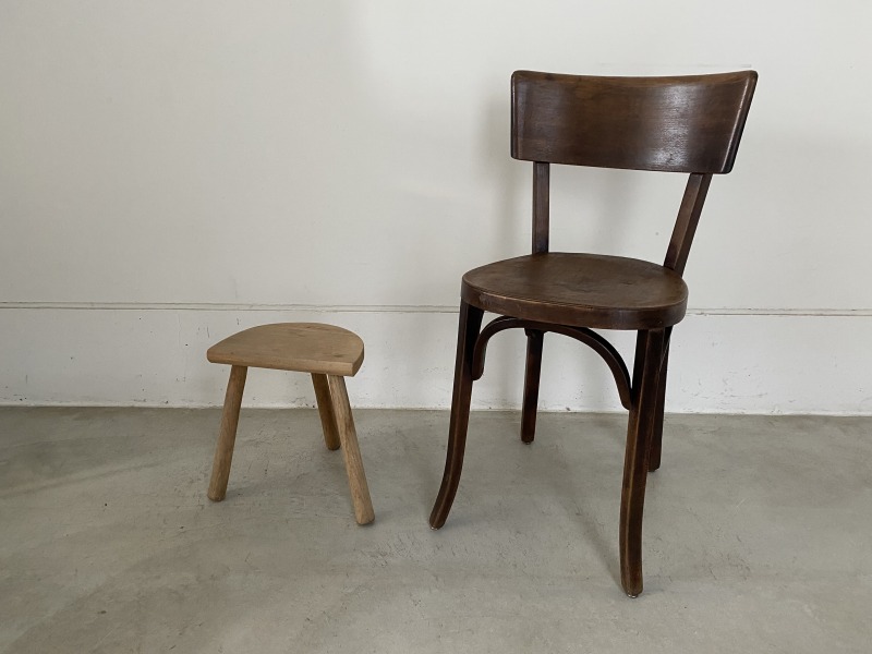 フランスで購入した50年代オーク材のウッドミニスツールです。