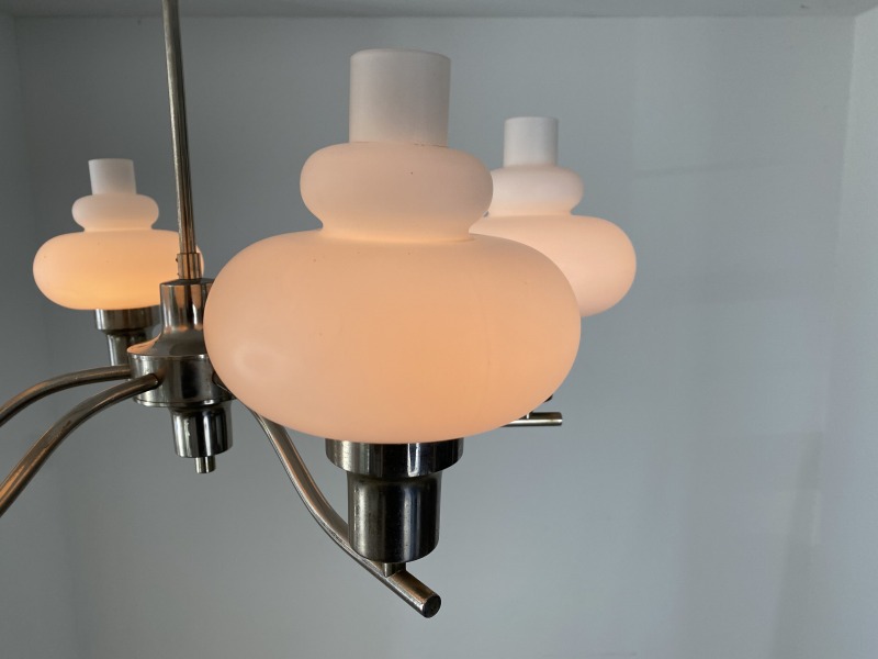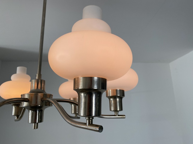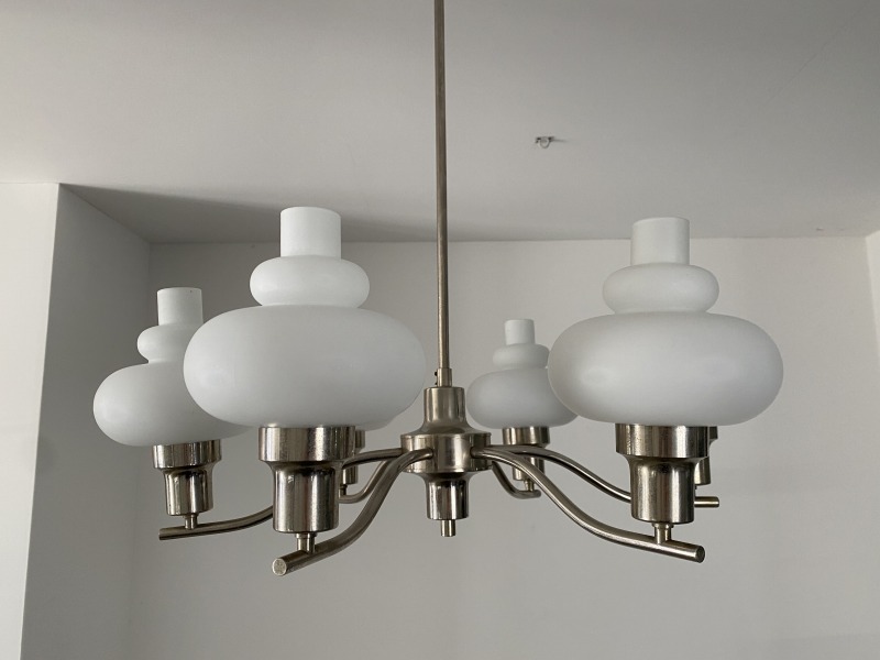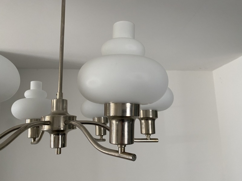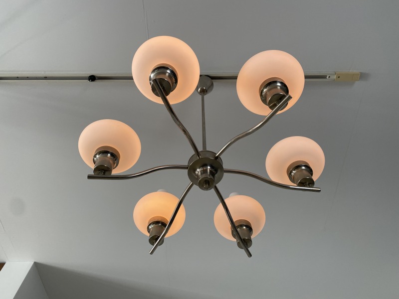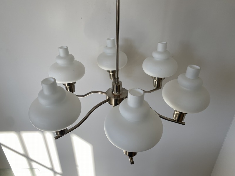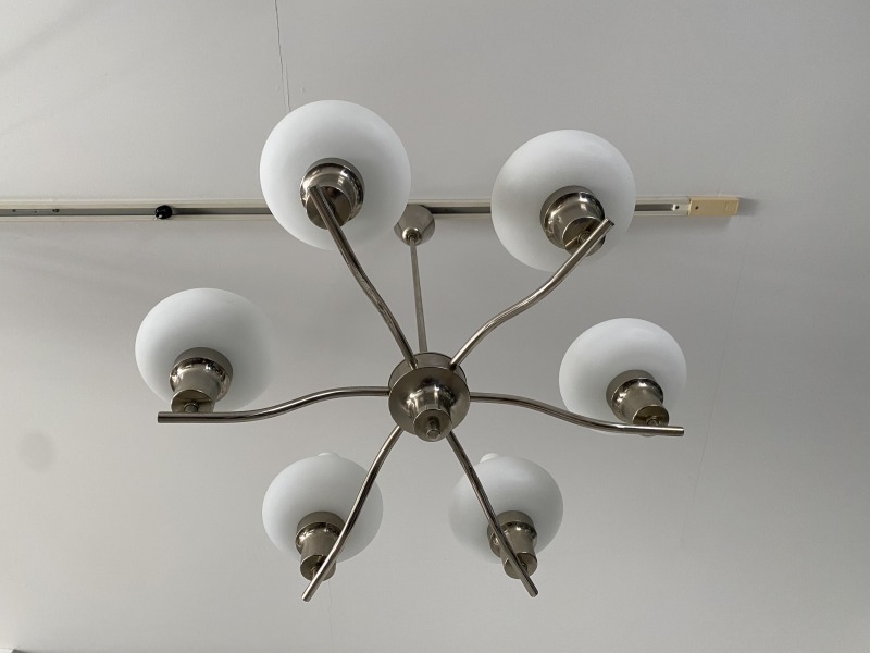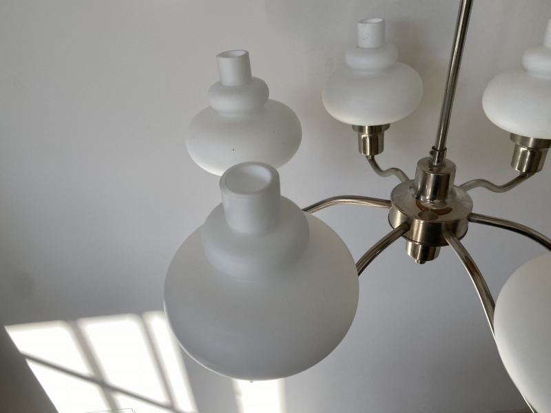 フランスで購入したミルクガラスシャンデリアです。