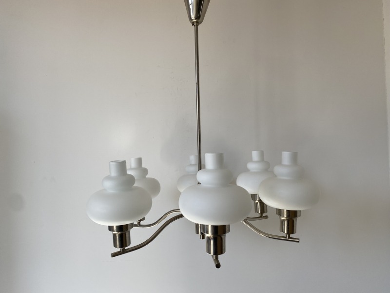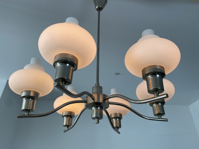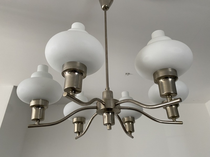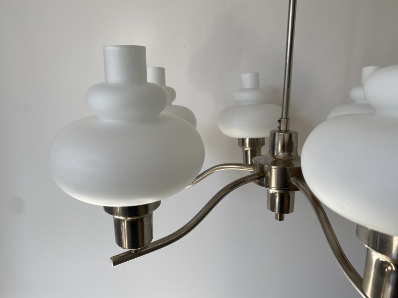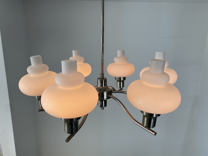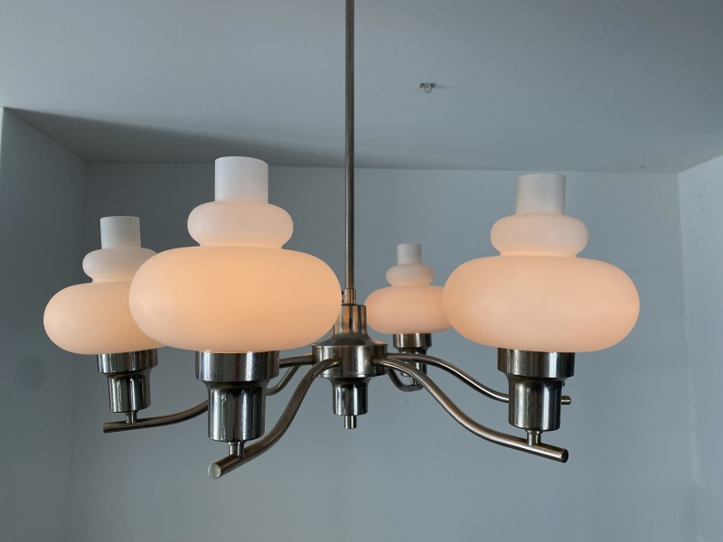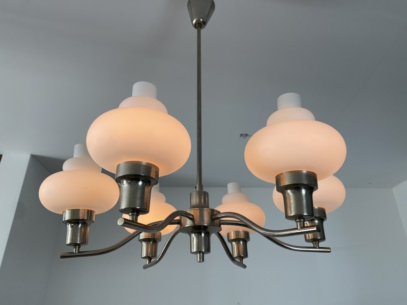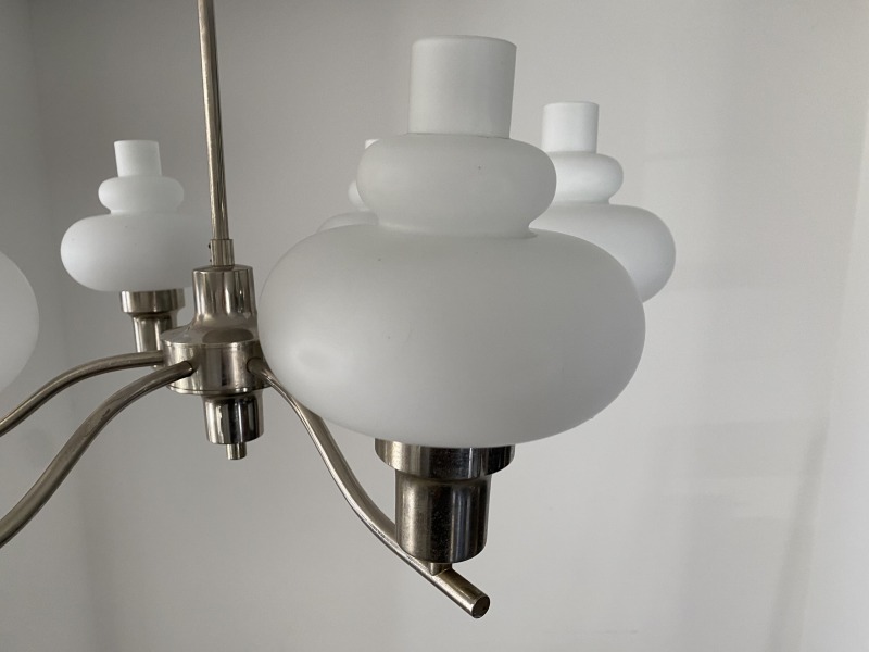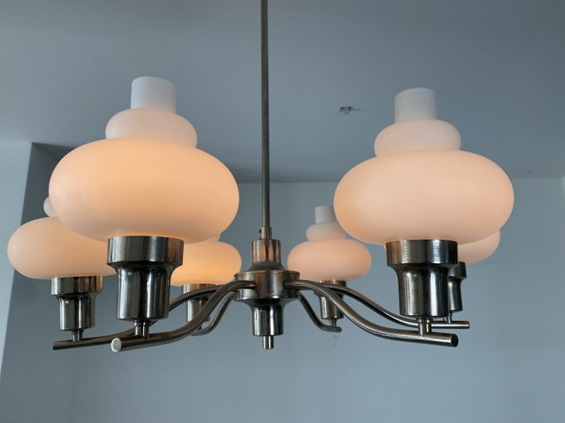 フランスで購入したミルクガラスシャンデリアです。