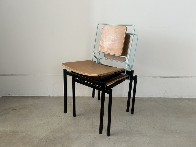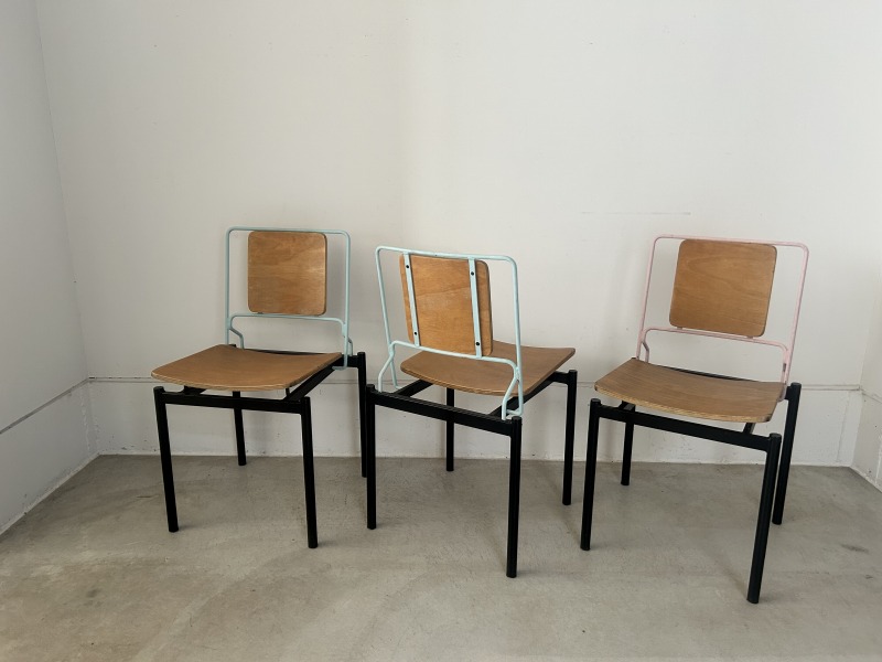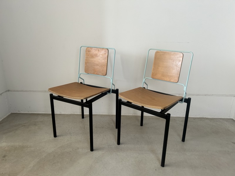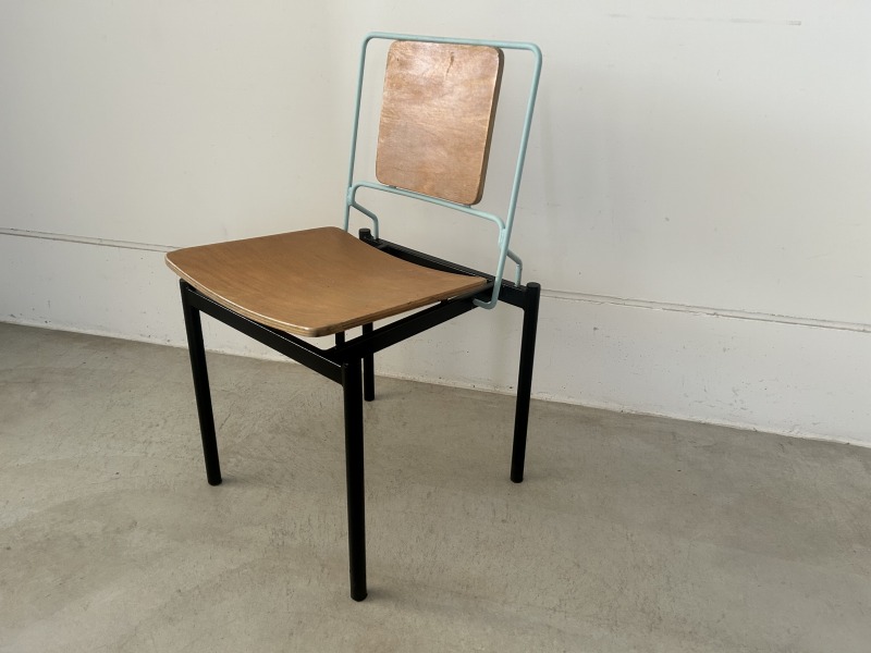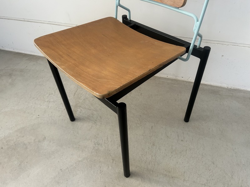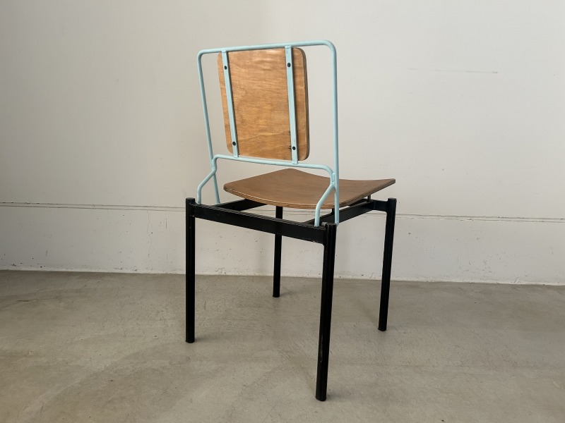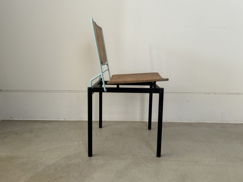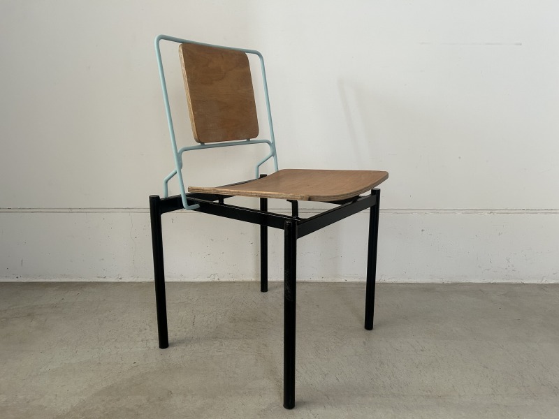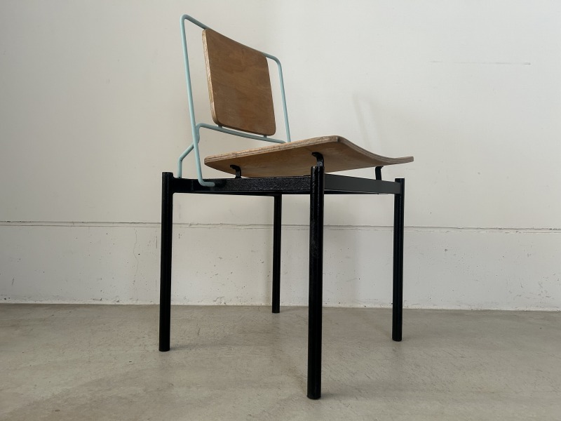 ブラックとブルーのメタルフレームでプライウッドの座面と背もたれはKreidezeit社製です。