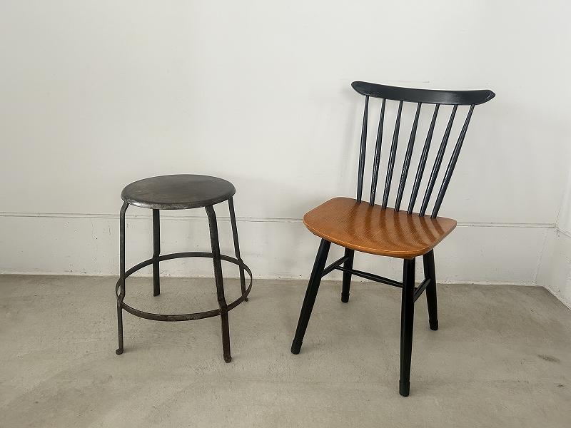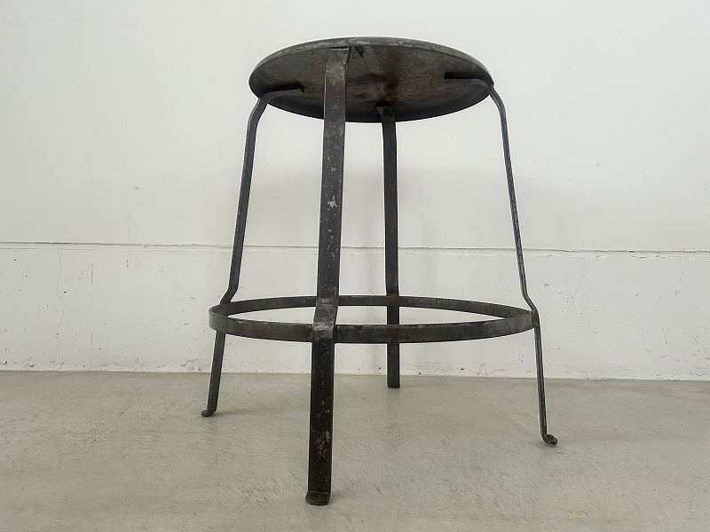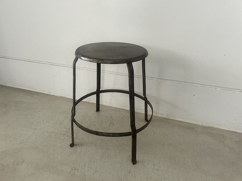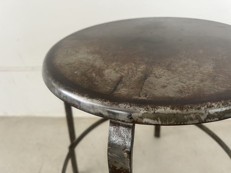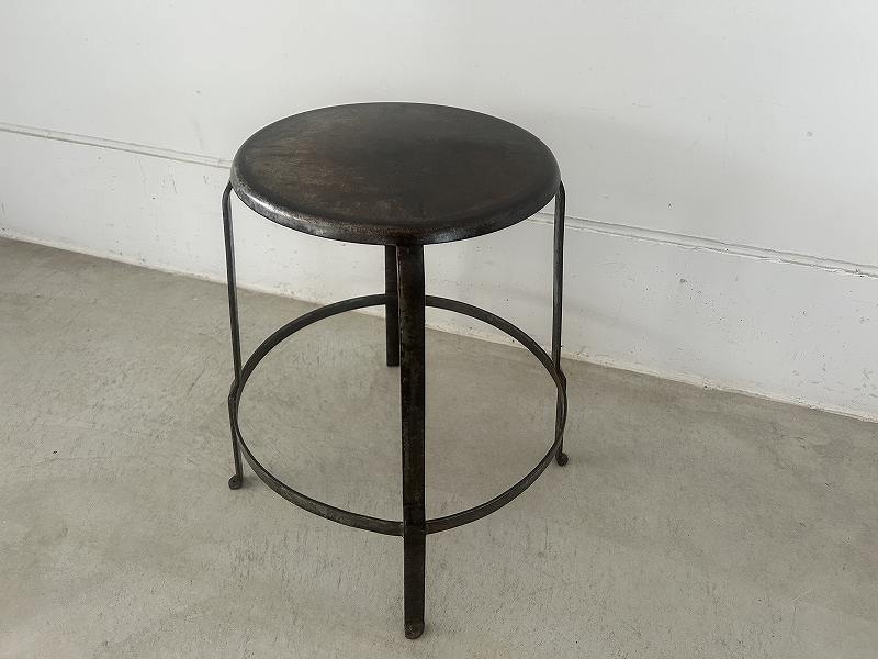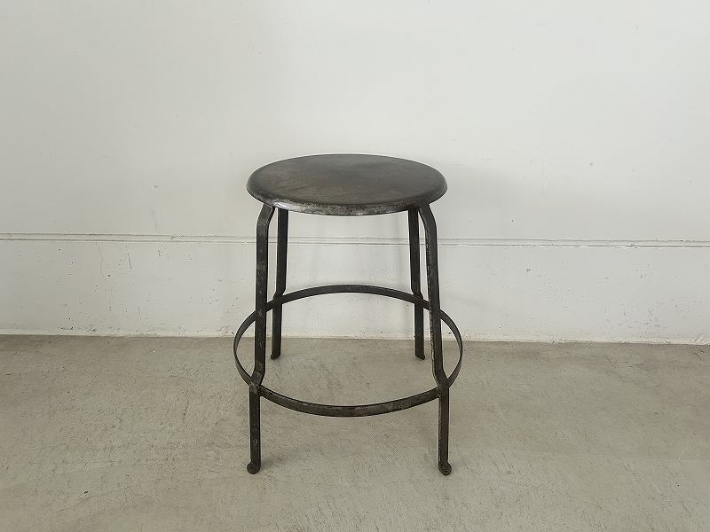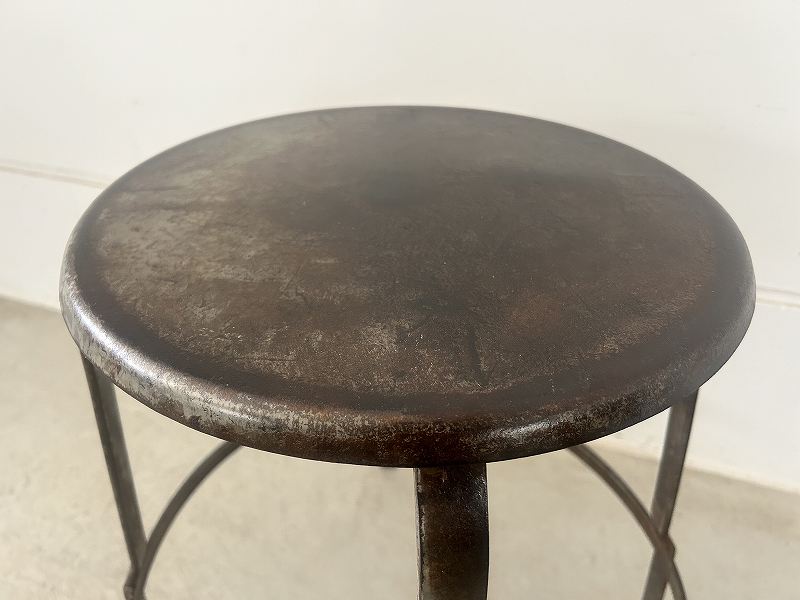 フランスで購入した丸い座面のアイアンスツールです。
