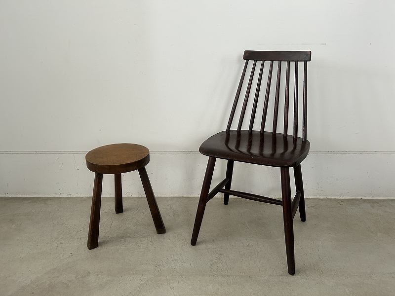 フランスで購入した60年代3本脚の丸ウッドミニスツールです。