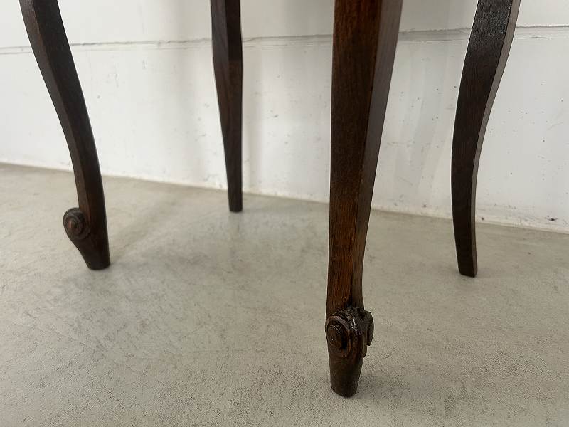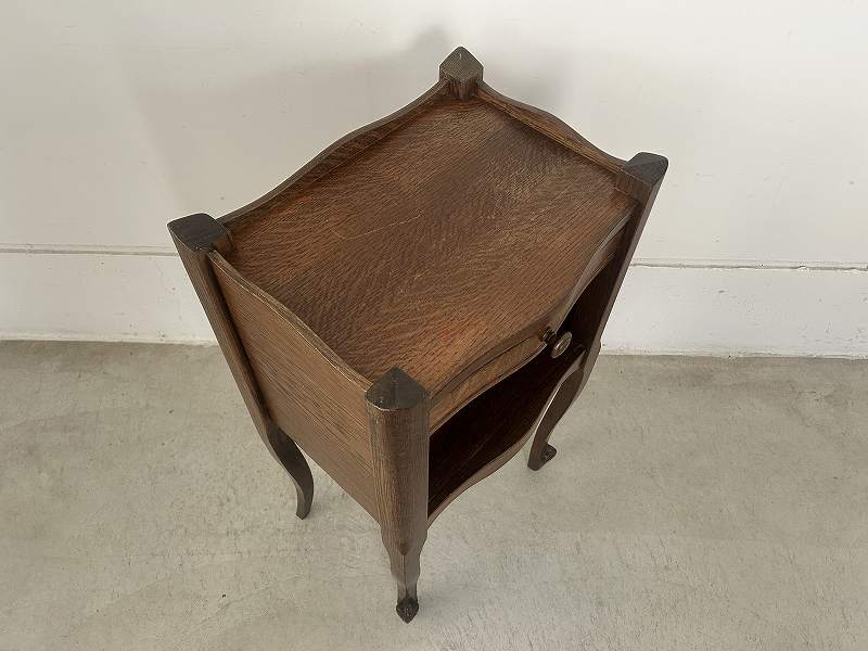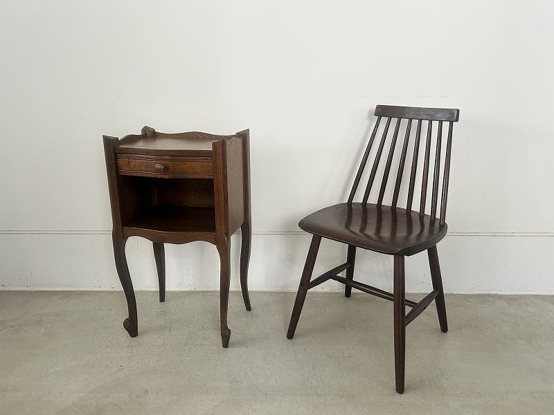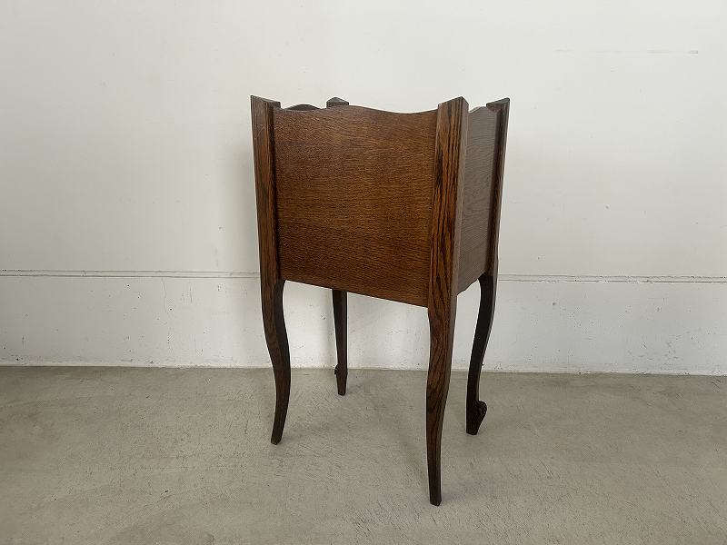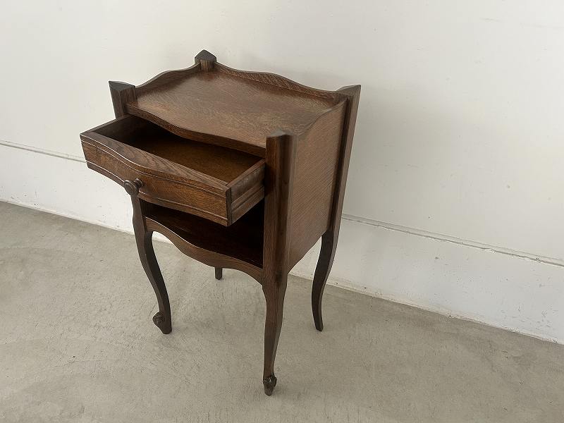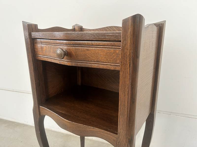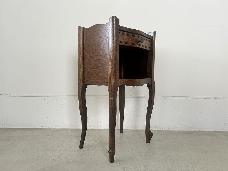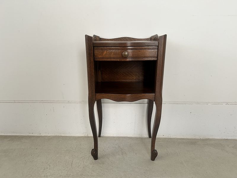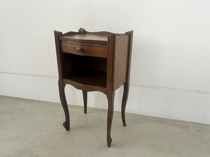 フランスで購入したネコ脚のウッドナイトテーブルです。