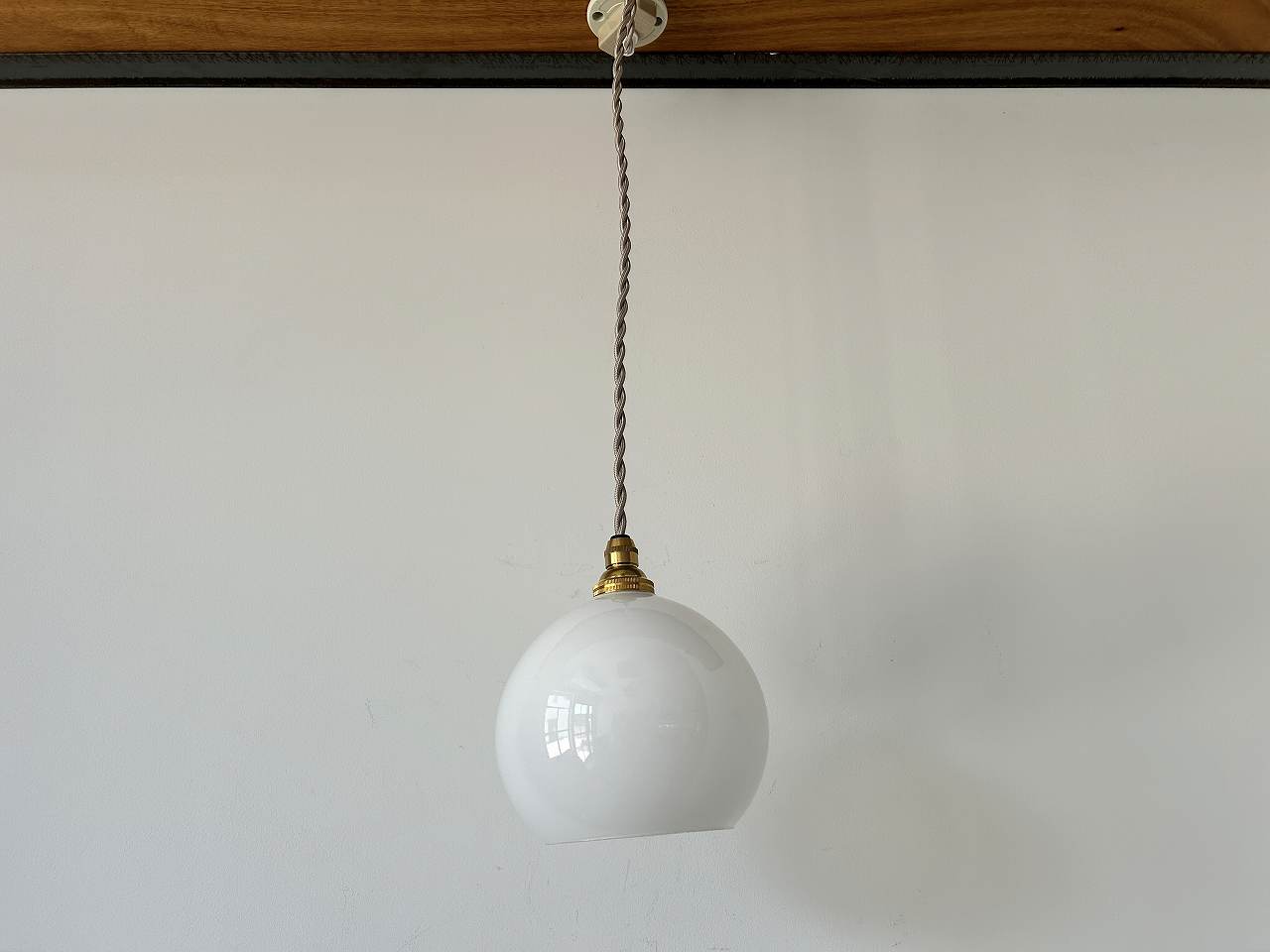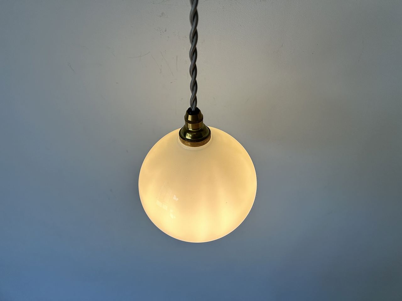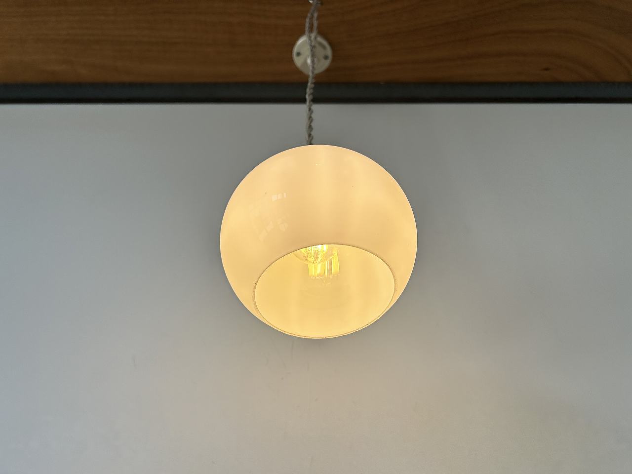 フランスで購入した小振りなミルクガラスシェードです。