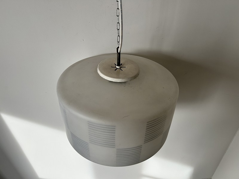 フランスで購入した大きめな曇りガラスのペンダントライトです。