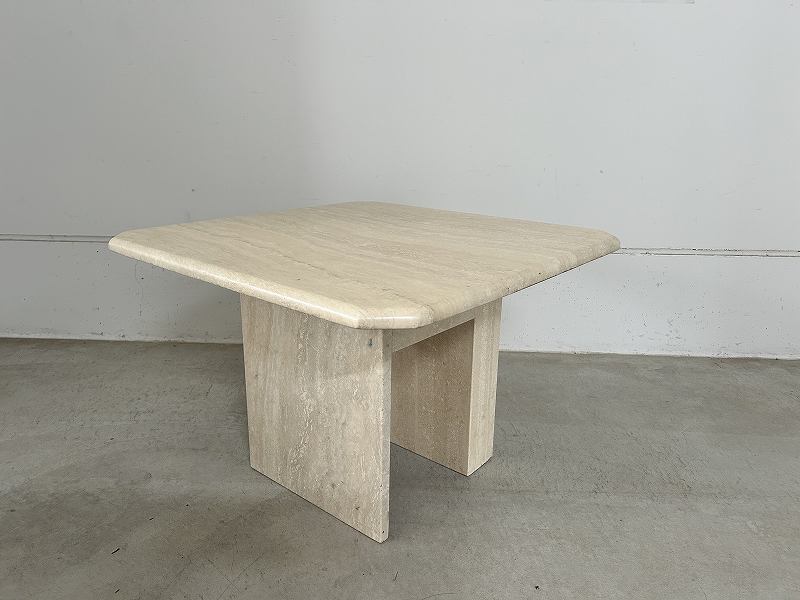 小振りなフォルムが印象的な大理石のコーヒーテーブル。