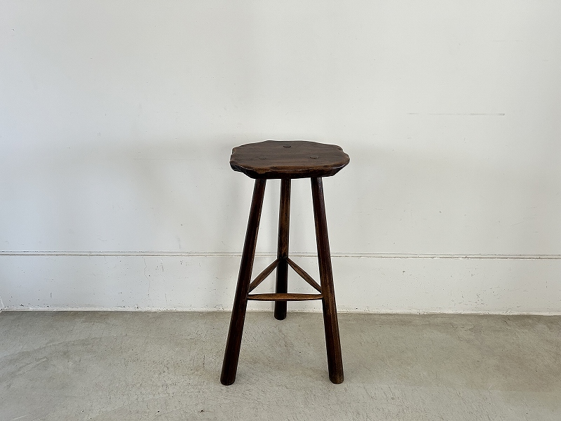 フランスで購入した60年代オーク材の3本脚ハイスツールです。