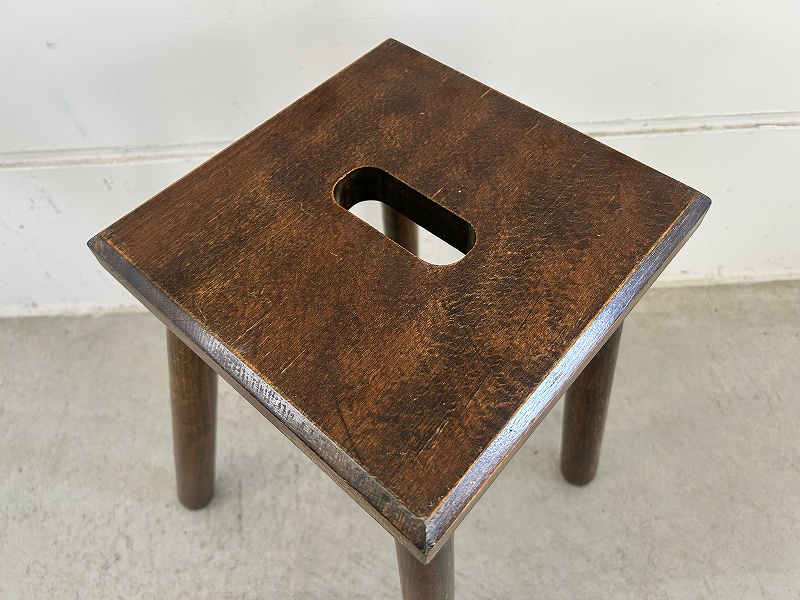 フランスで購入したオーク材のスクエアスツールです。