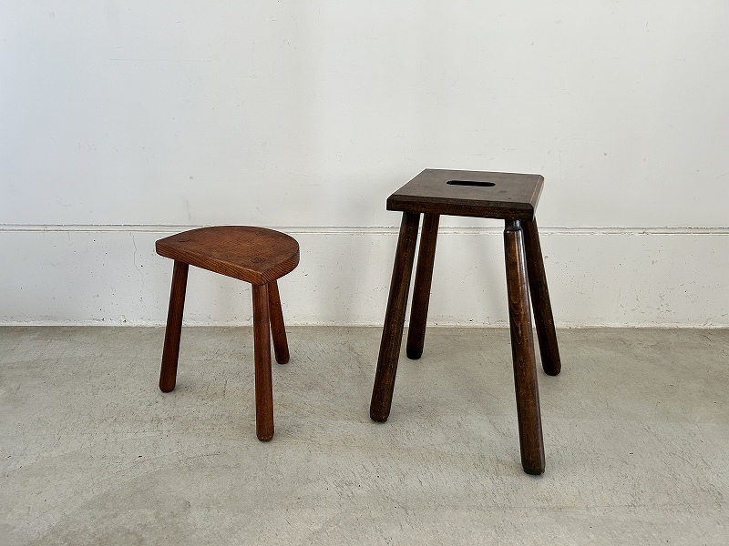 フランスで購入した50年代オーク材のウッドミニスツールです。