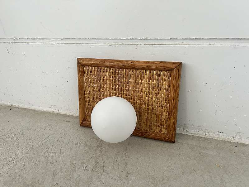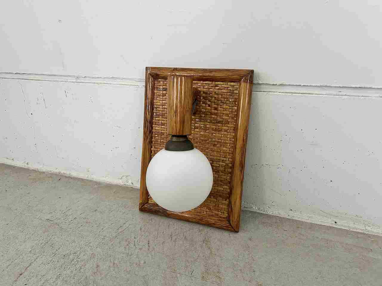 Milk glass & rattan wall lamp 1