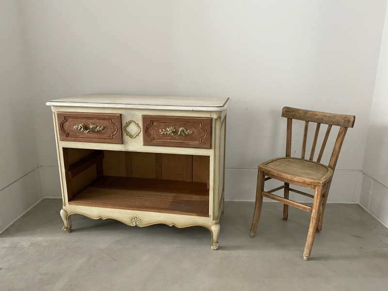 フランスで購入したオーク材とラワン材のショップカウンターです。