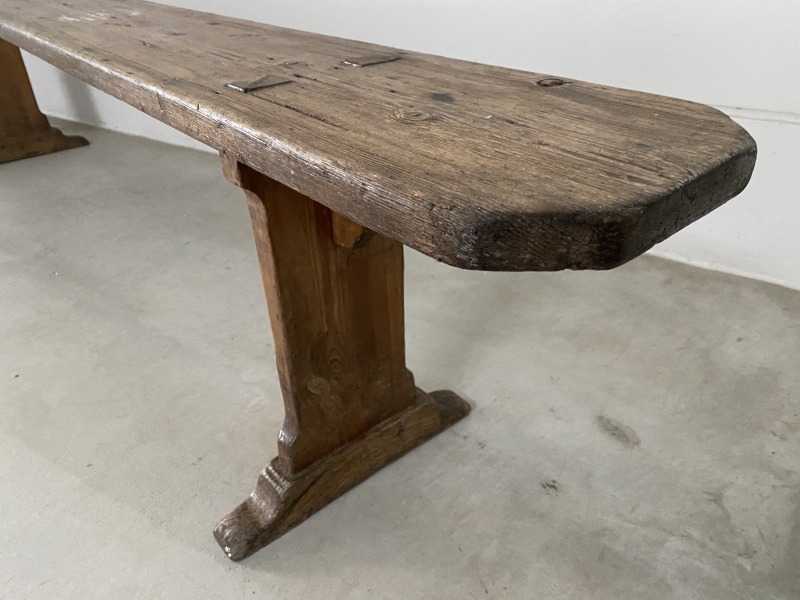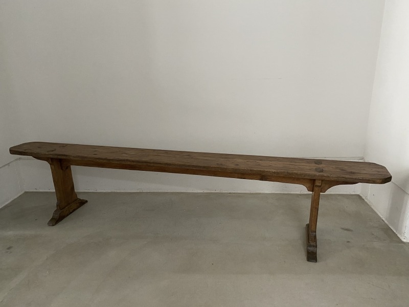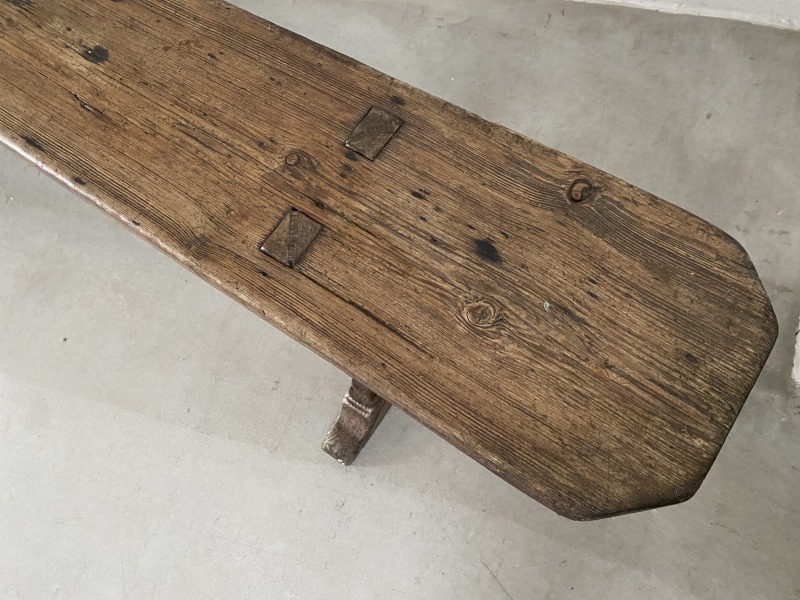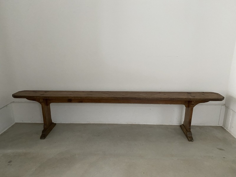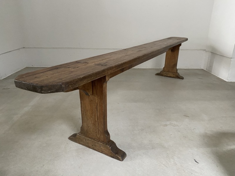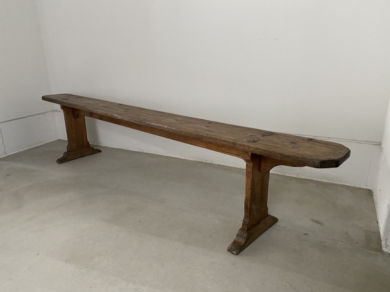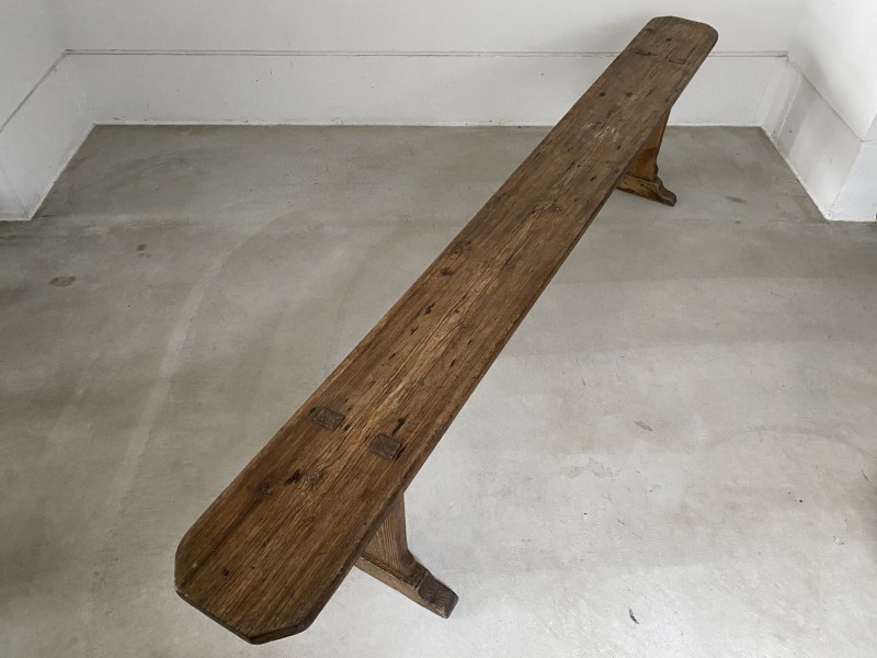 フランスで購入した40年代パイン材のロングベンチです。