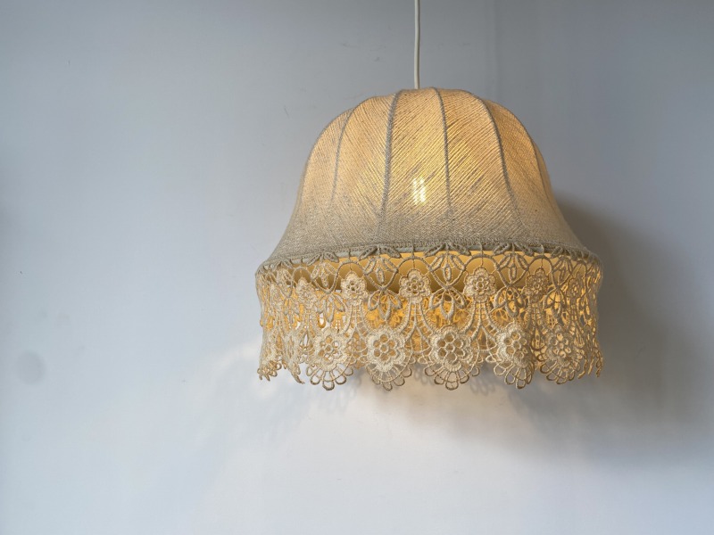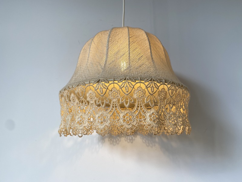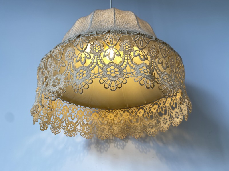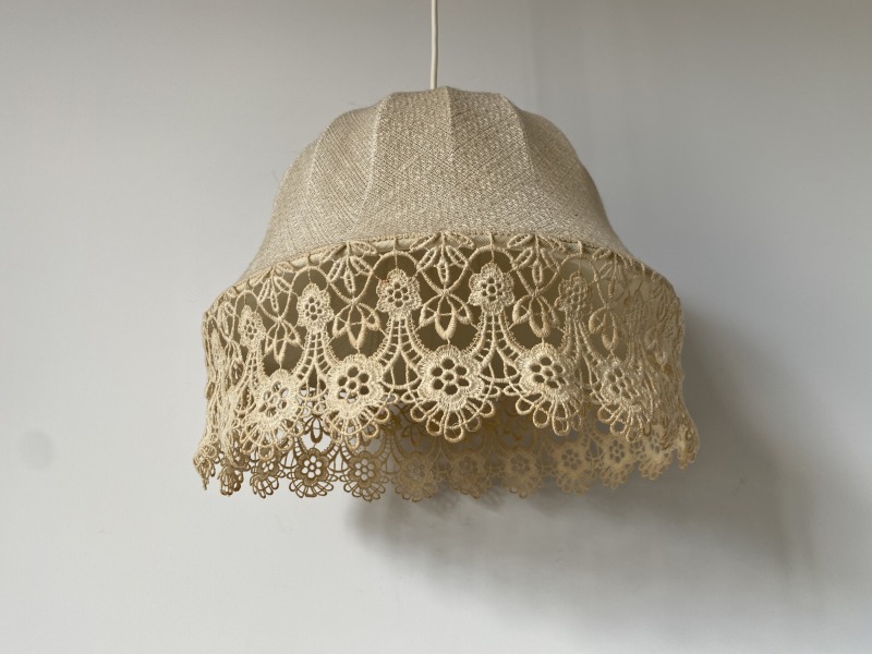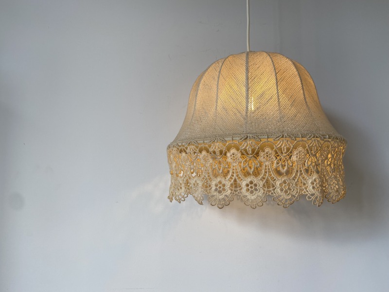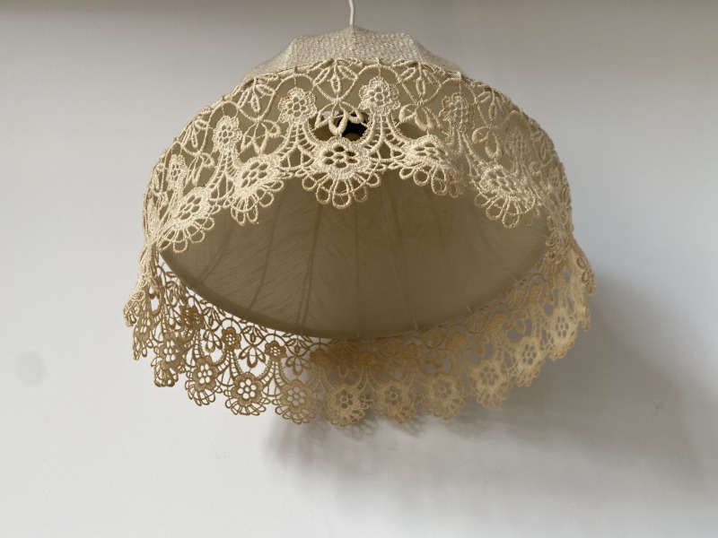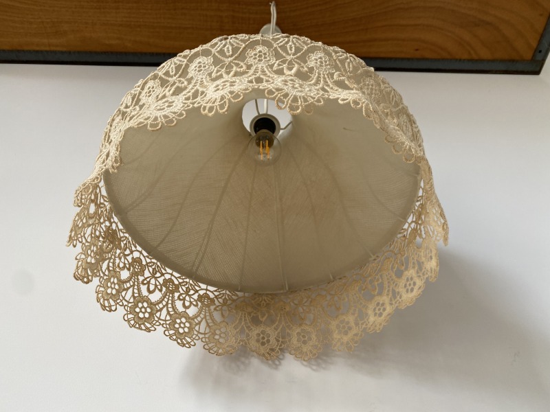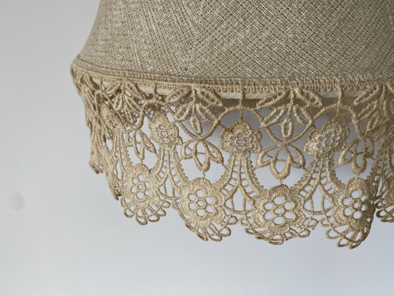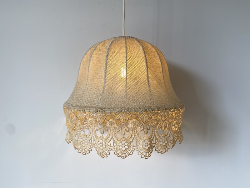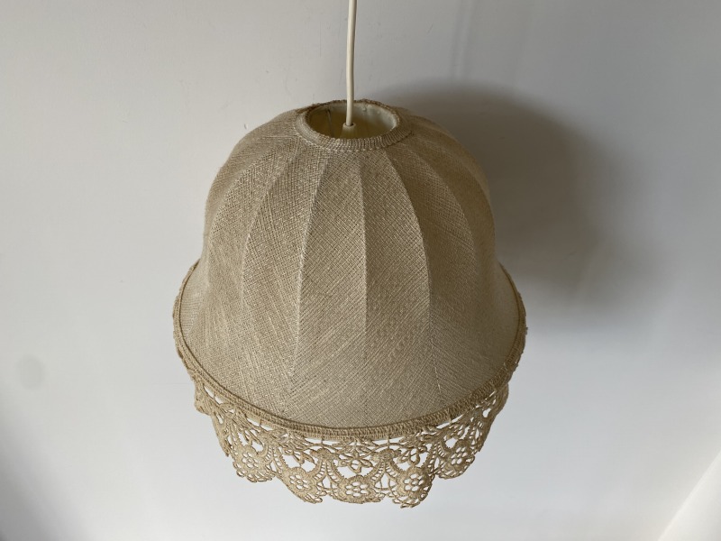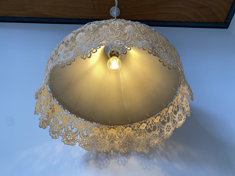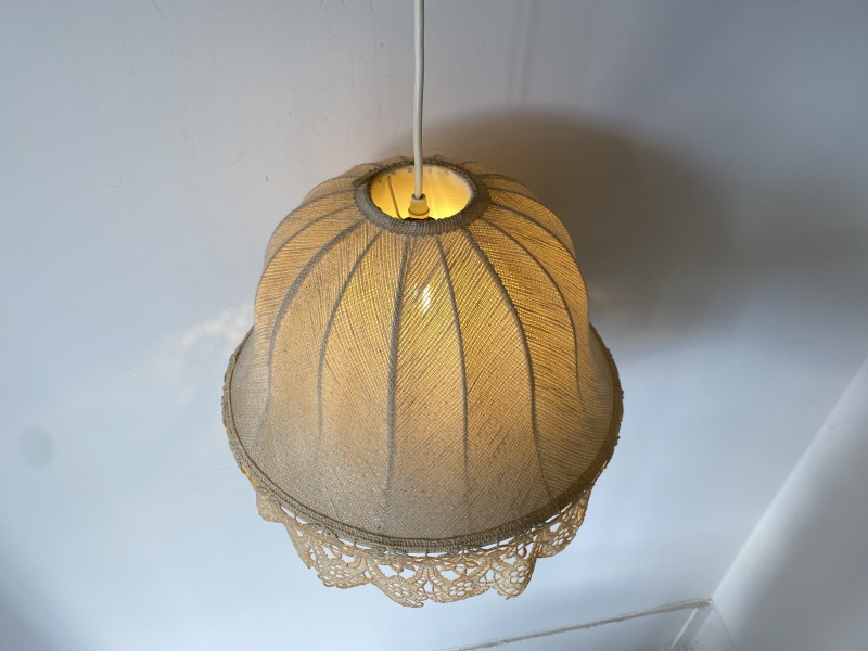 フランスで購入したレース&コットンシェードペンダントライトです。