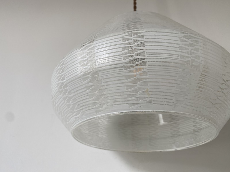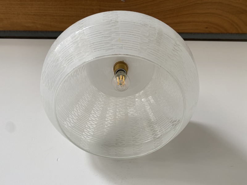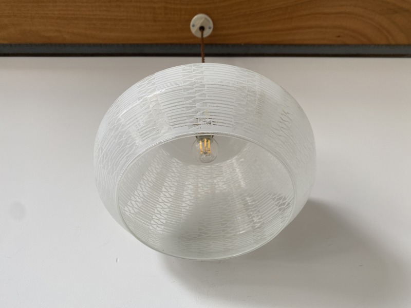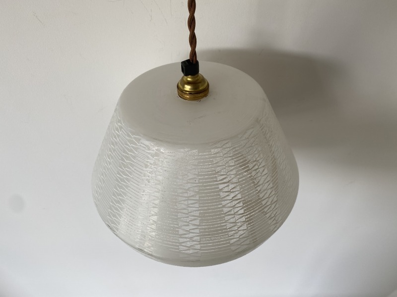 フランスで購入した曇りガラスのペンダントライトです。