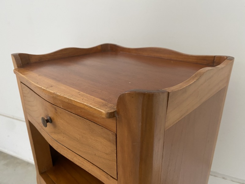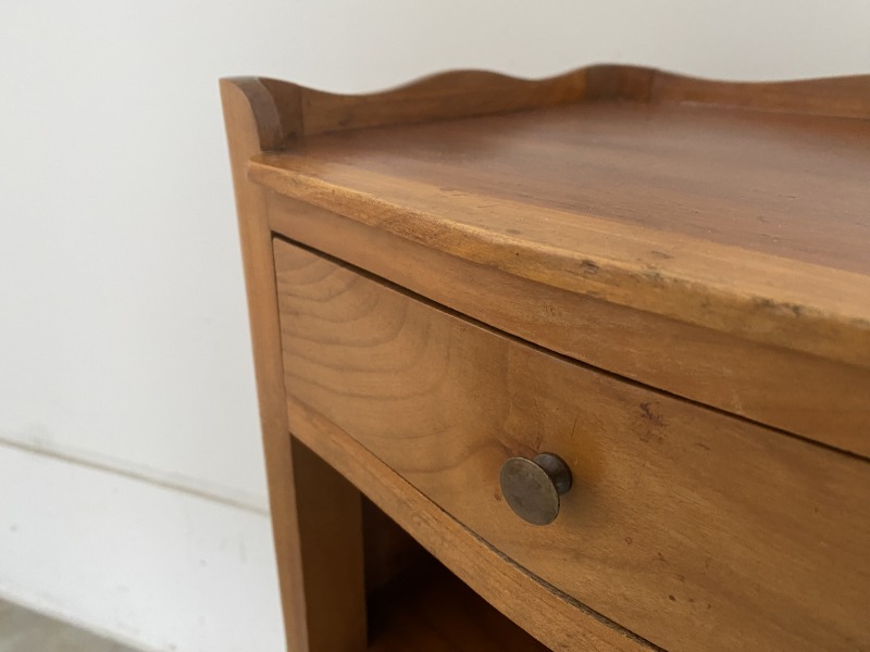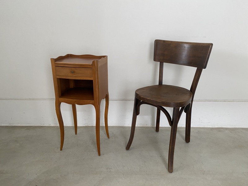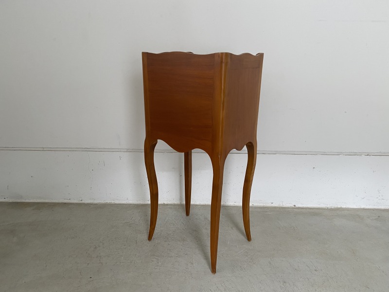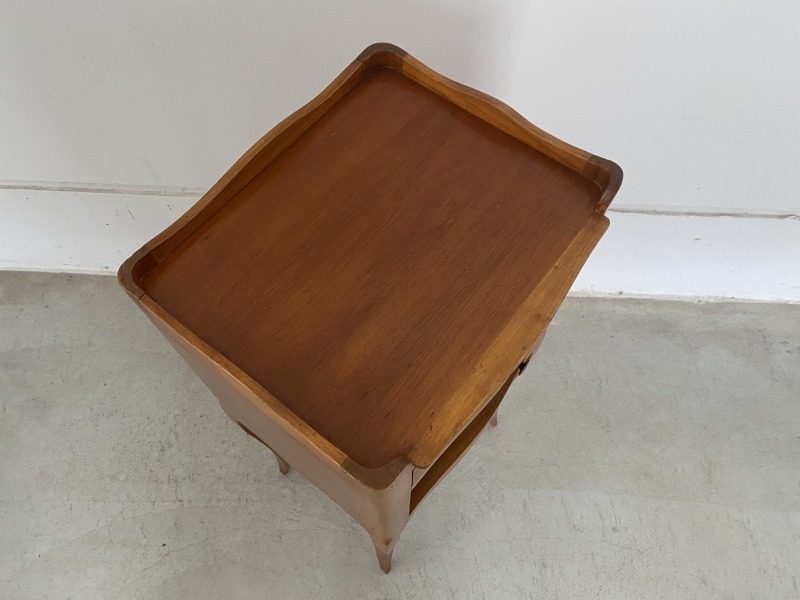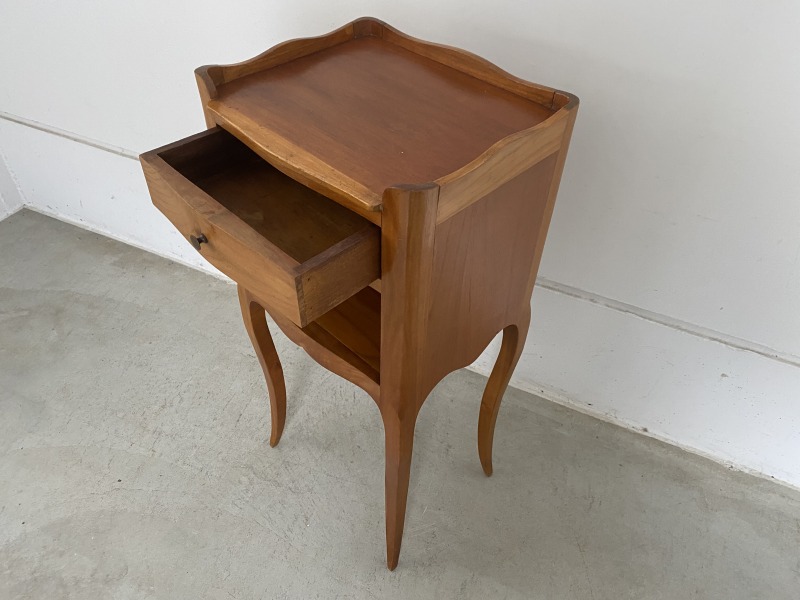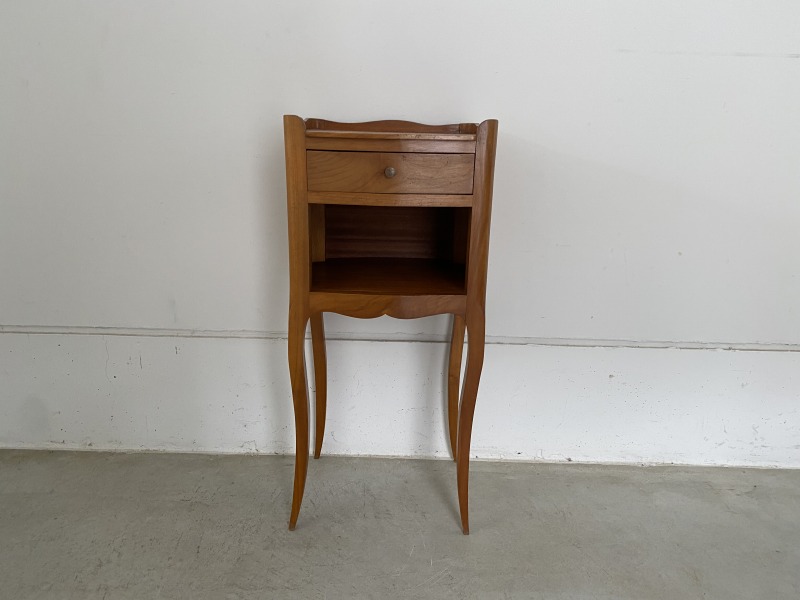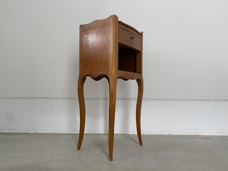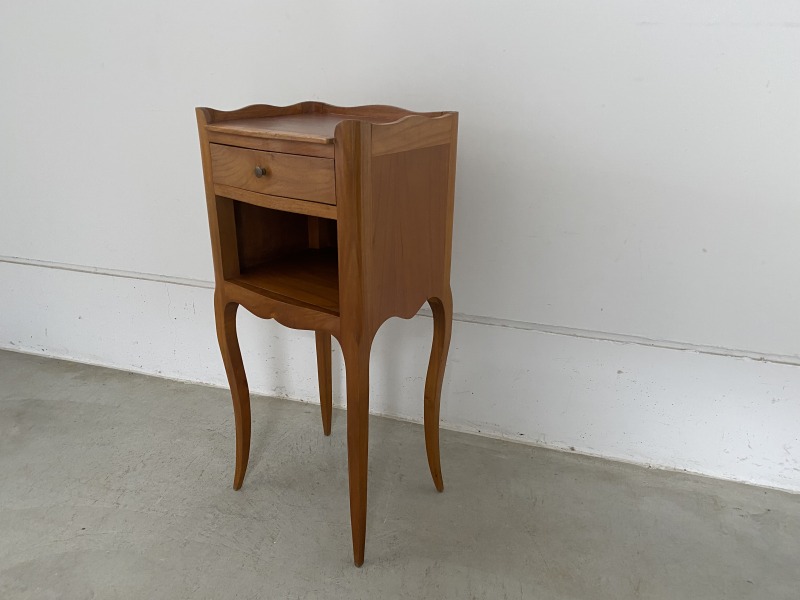 フランスで購入したネコ脚のウッドナイトテーブルです。