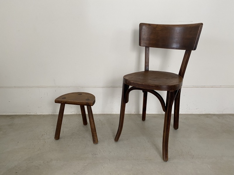 フランスで購入した50年代オーク材のウッドミニスツールです。