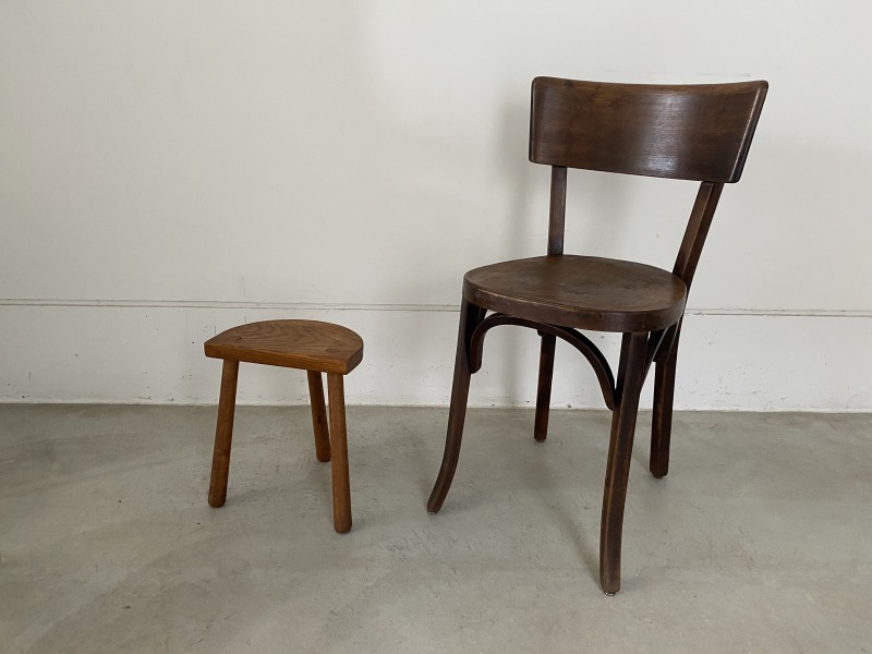 フランスで購入した50年代オーク材のウッドミニスツールです。