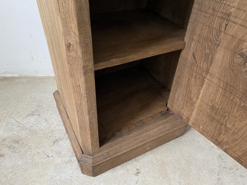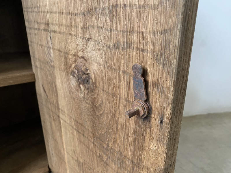 棚板は固定、取っ手を時計回りにまわすと扉が開きます。