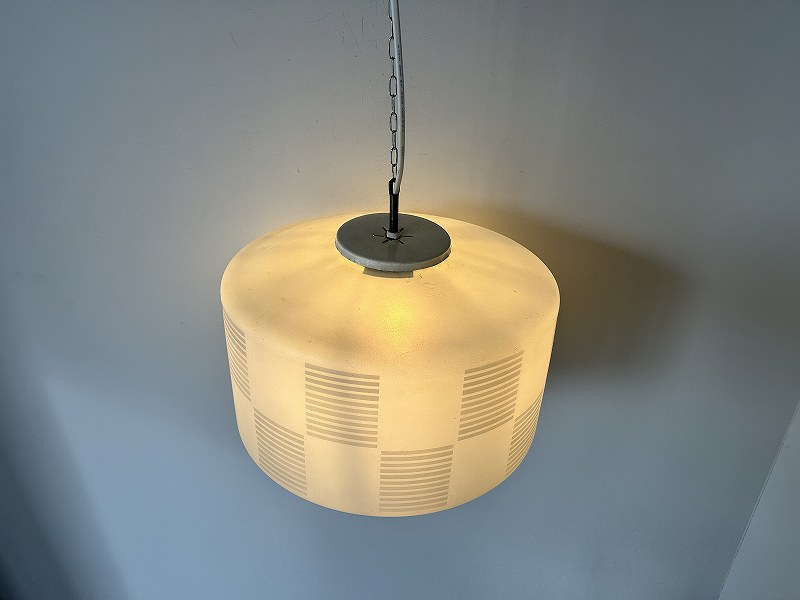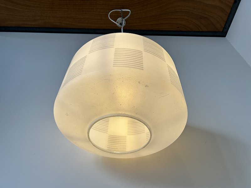フランスで購入した大きめな曇りガラスのペンダントライトです。