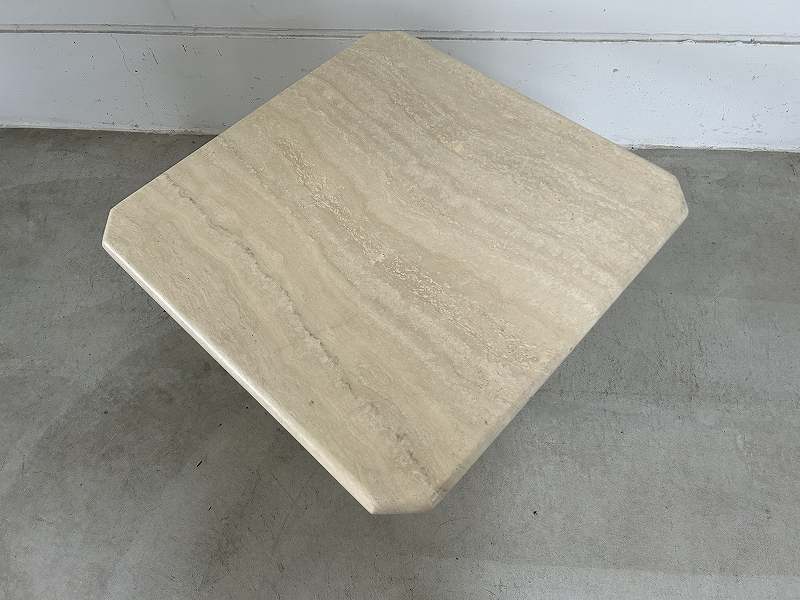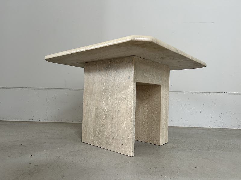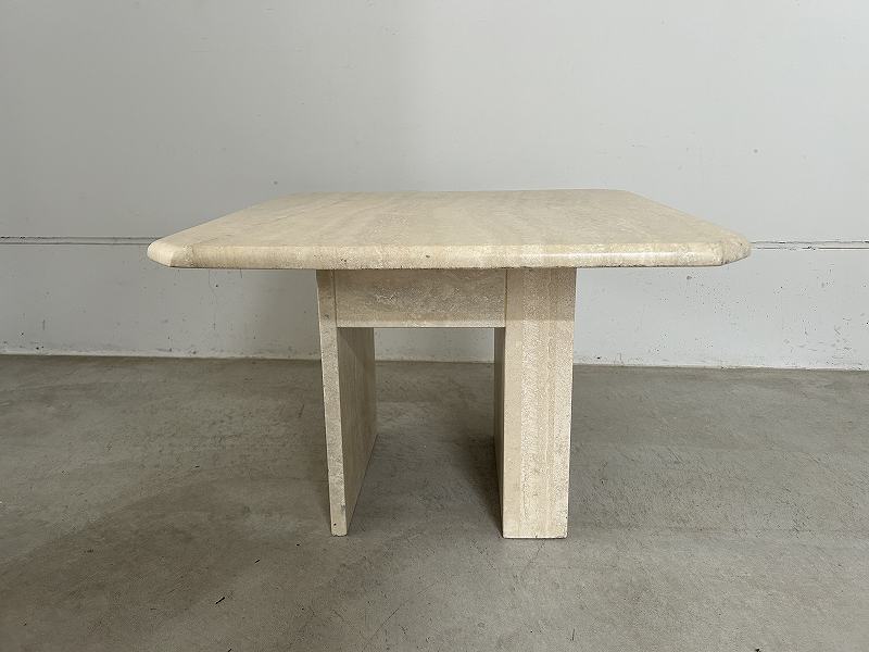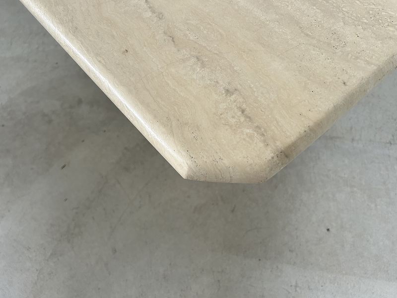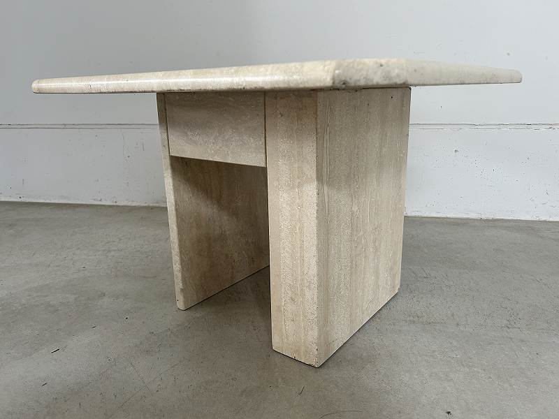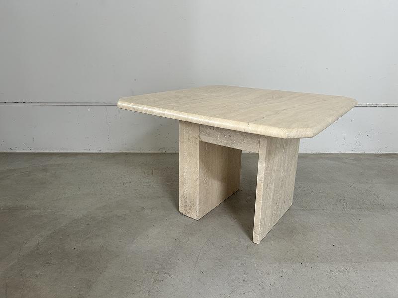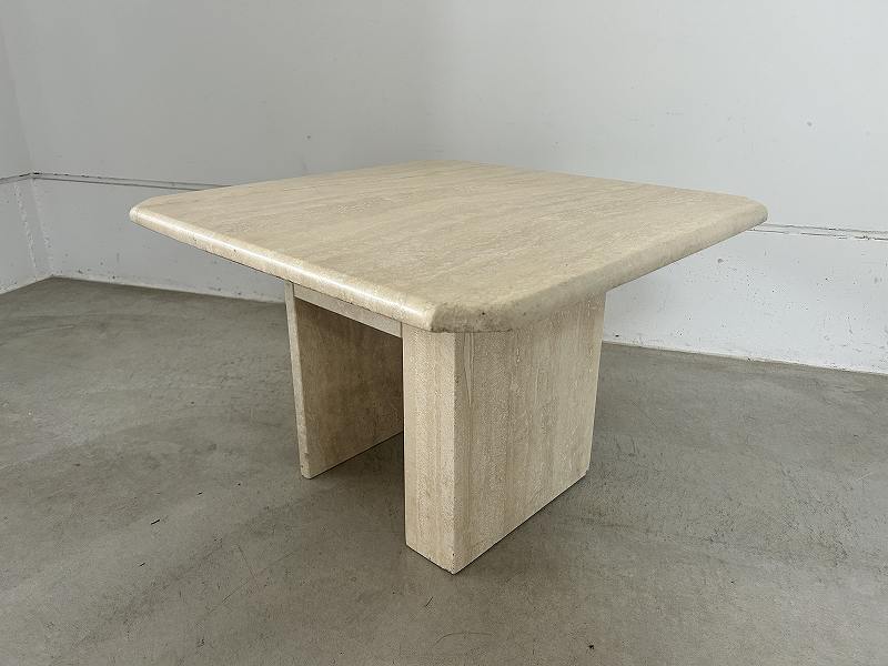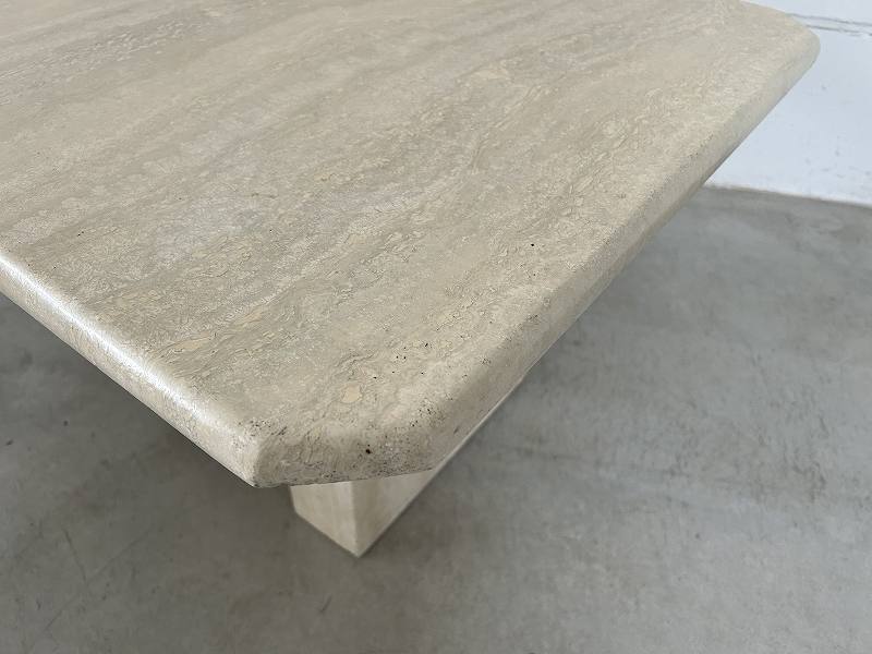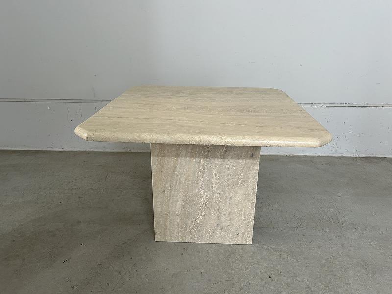 小振りなフォルムが印象的な大理石のコーヒーテーブル。
