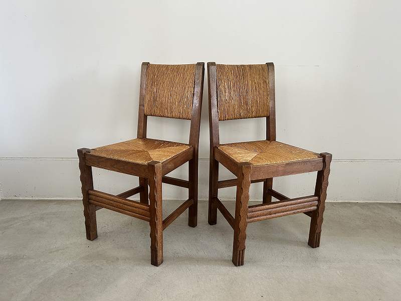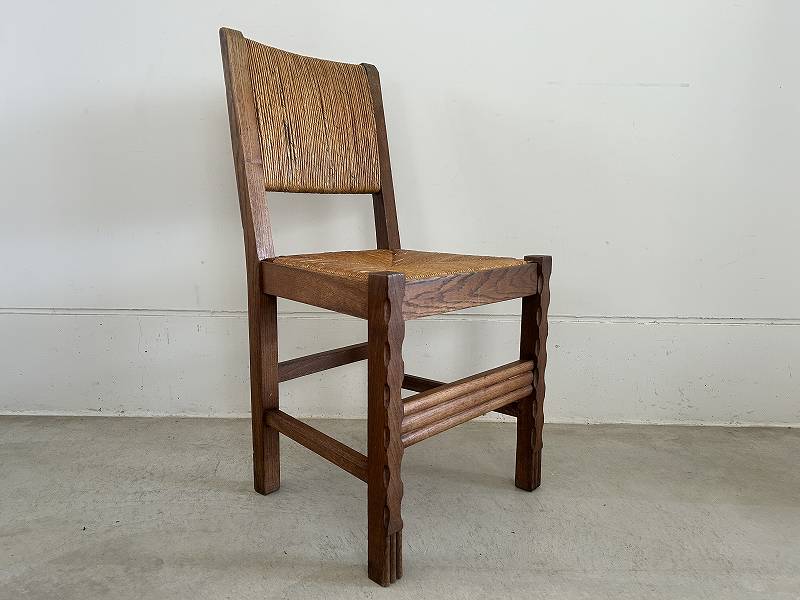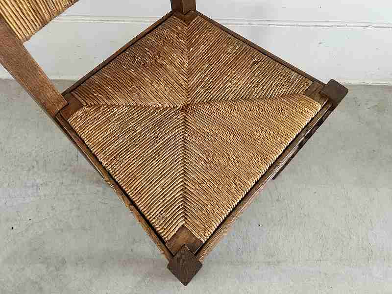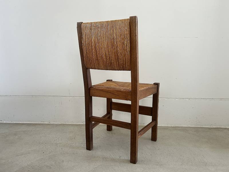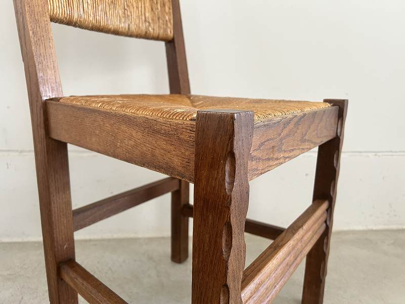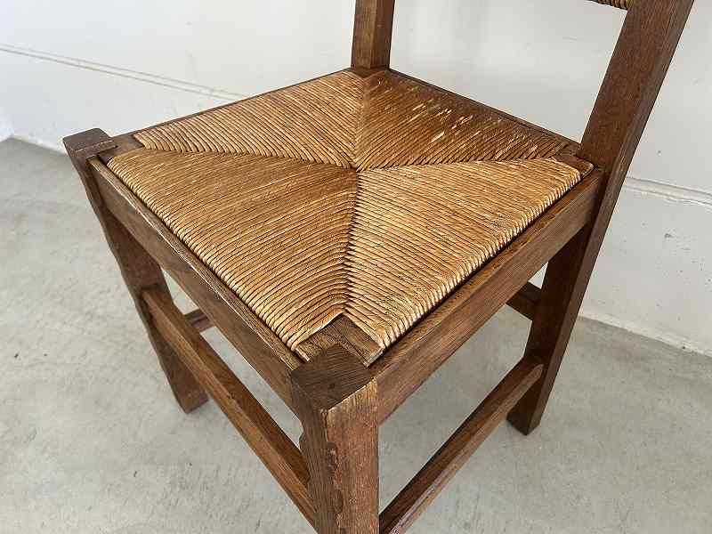 座面・背もたれは天然素材を紐状に編み込んでつくられるラッシュシートになっているため、より素朴さが強調されています。
