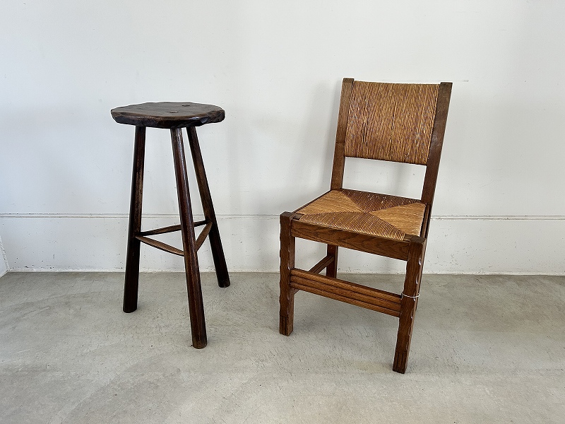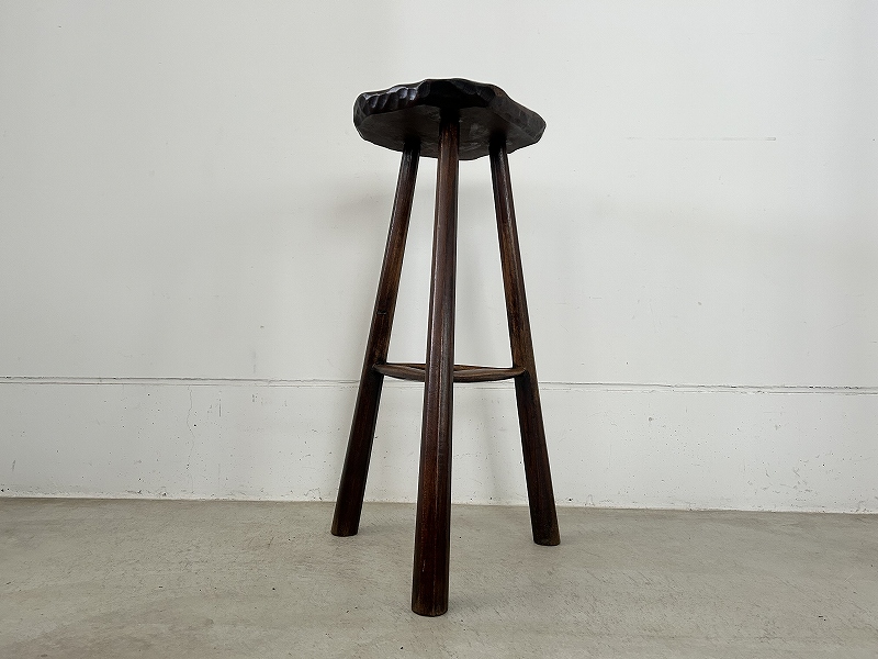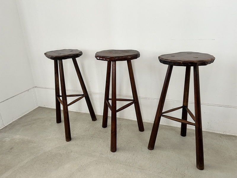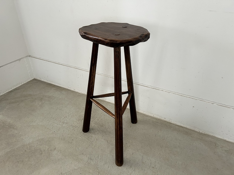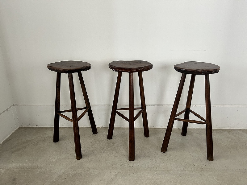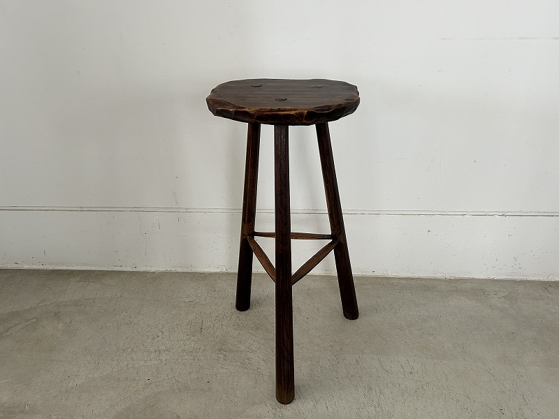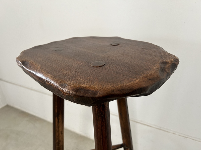 フランスで購入した60年代オーク材の3本脚ハイスツールです。